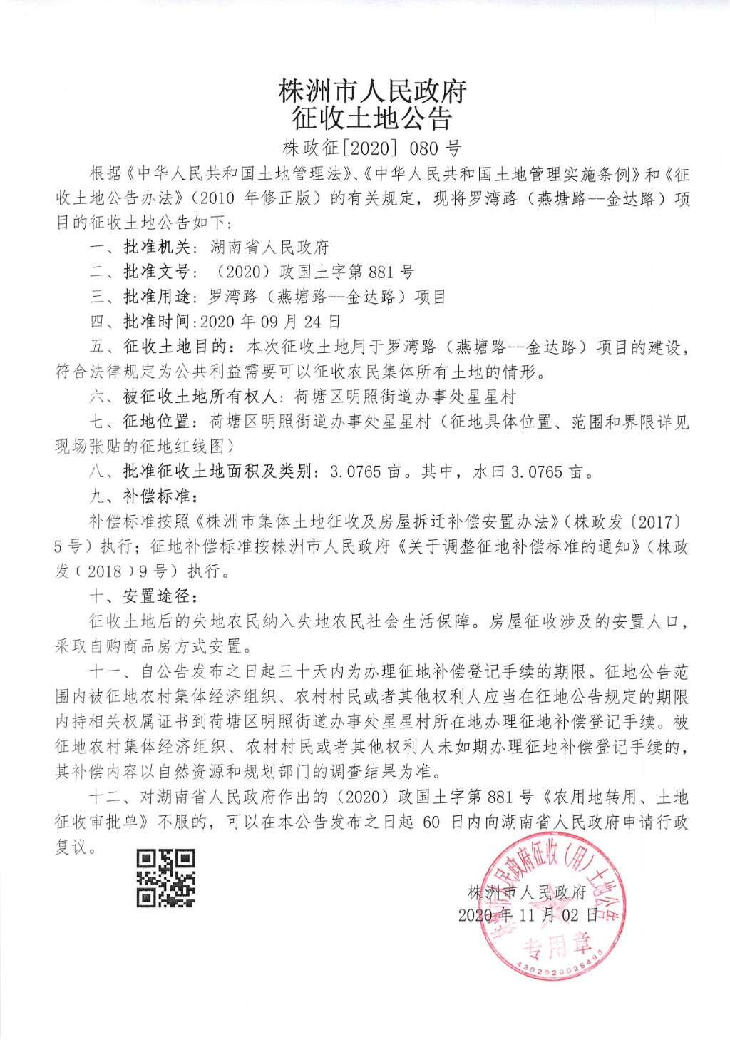 征收土地公告--罗落路(燕塘路--金达路)项目