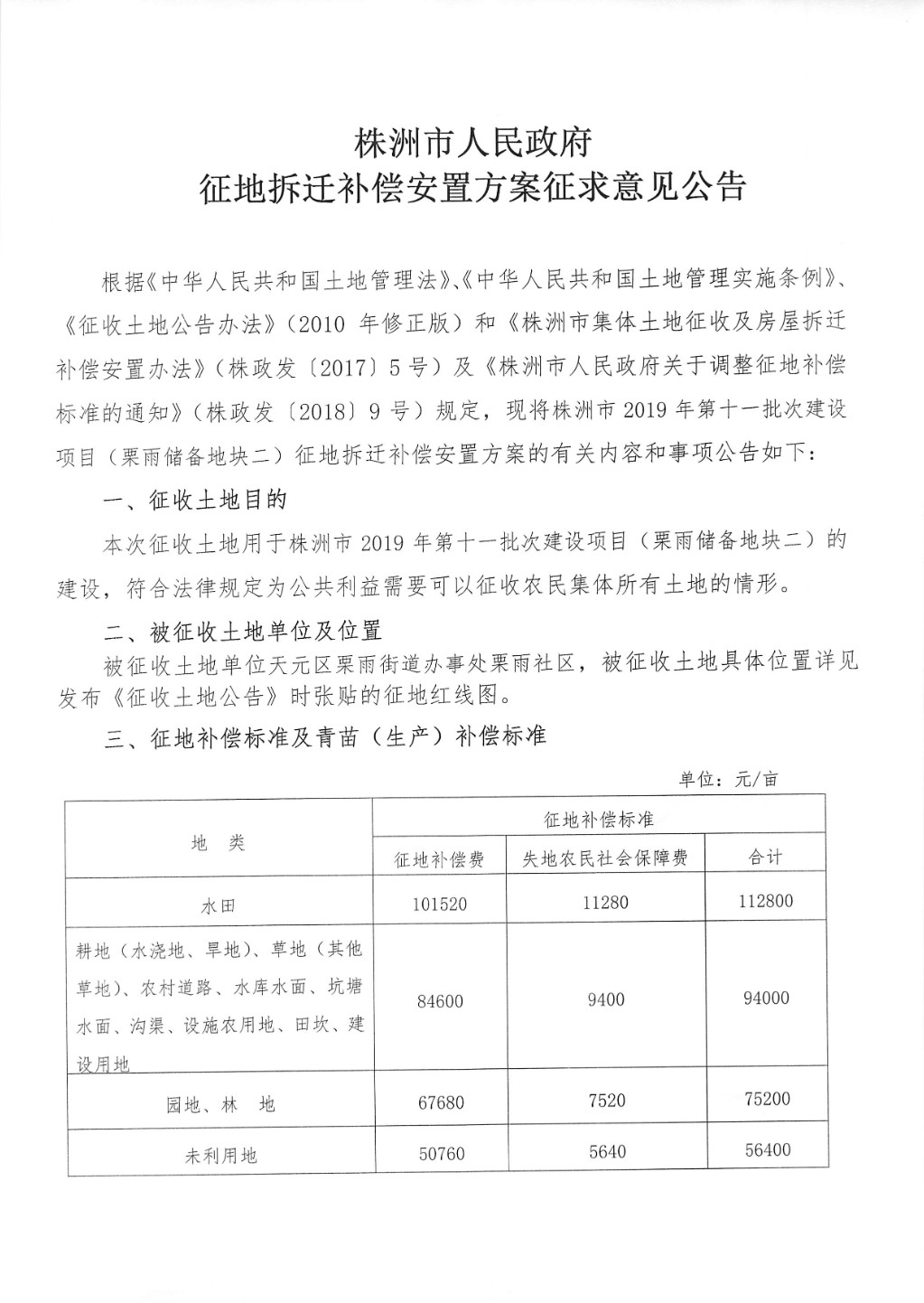 征地拆迁补偿安置方案征求意见公告--栗雨储备地块二