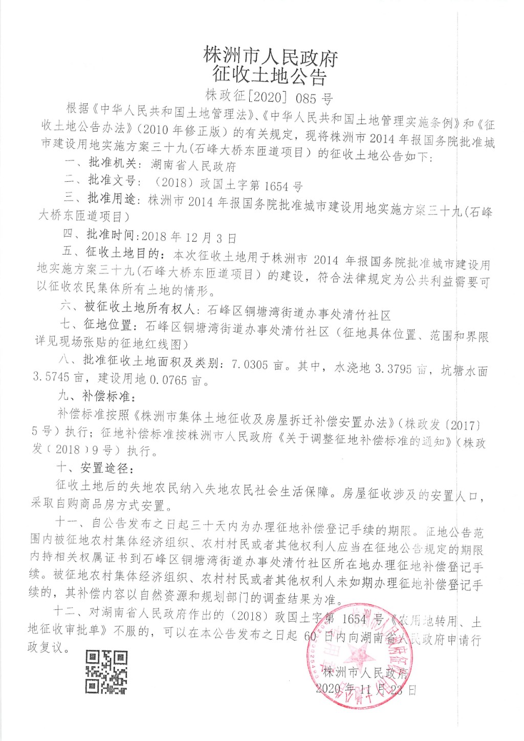 征收土地公告--石峰大桥东匝道项目