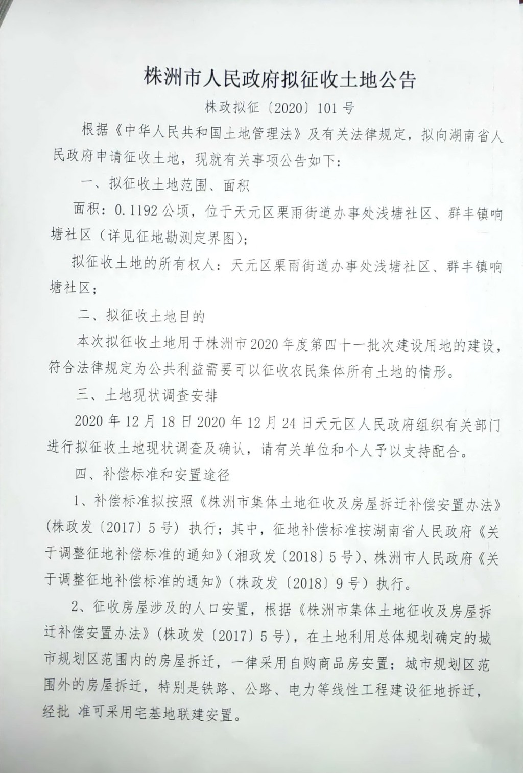 拟征收土地公告 2020年度第四十一批次建设项目