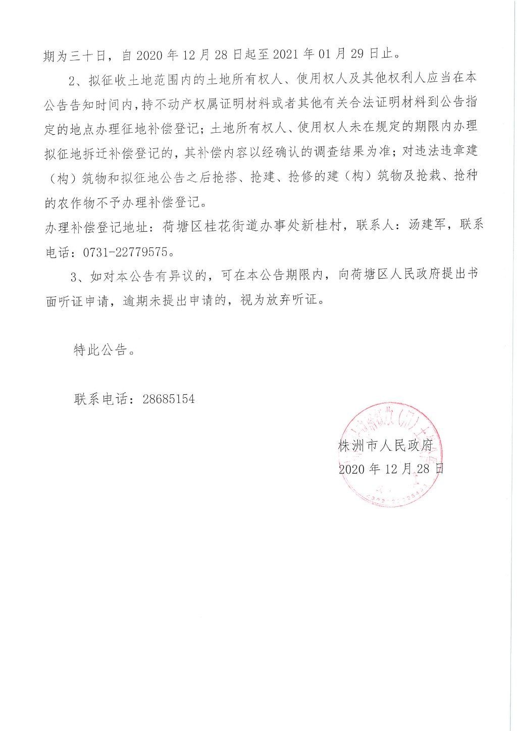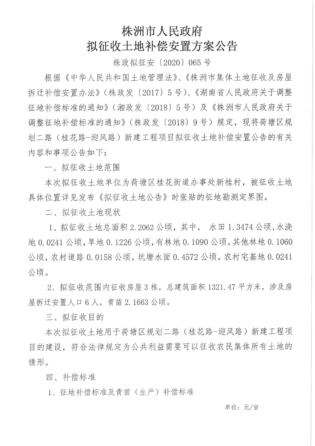 拟征收土地补偿安置方案公告地(株政拟征安(2020)065号)