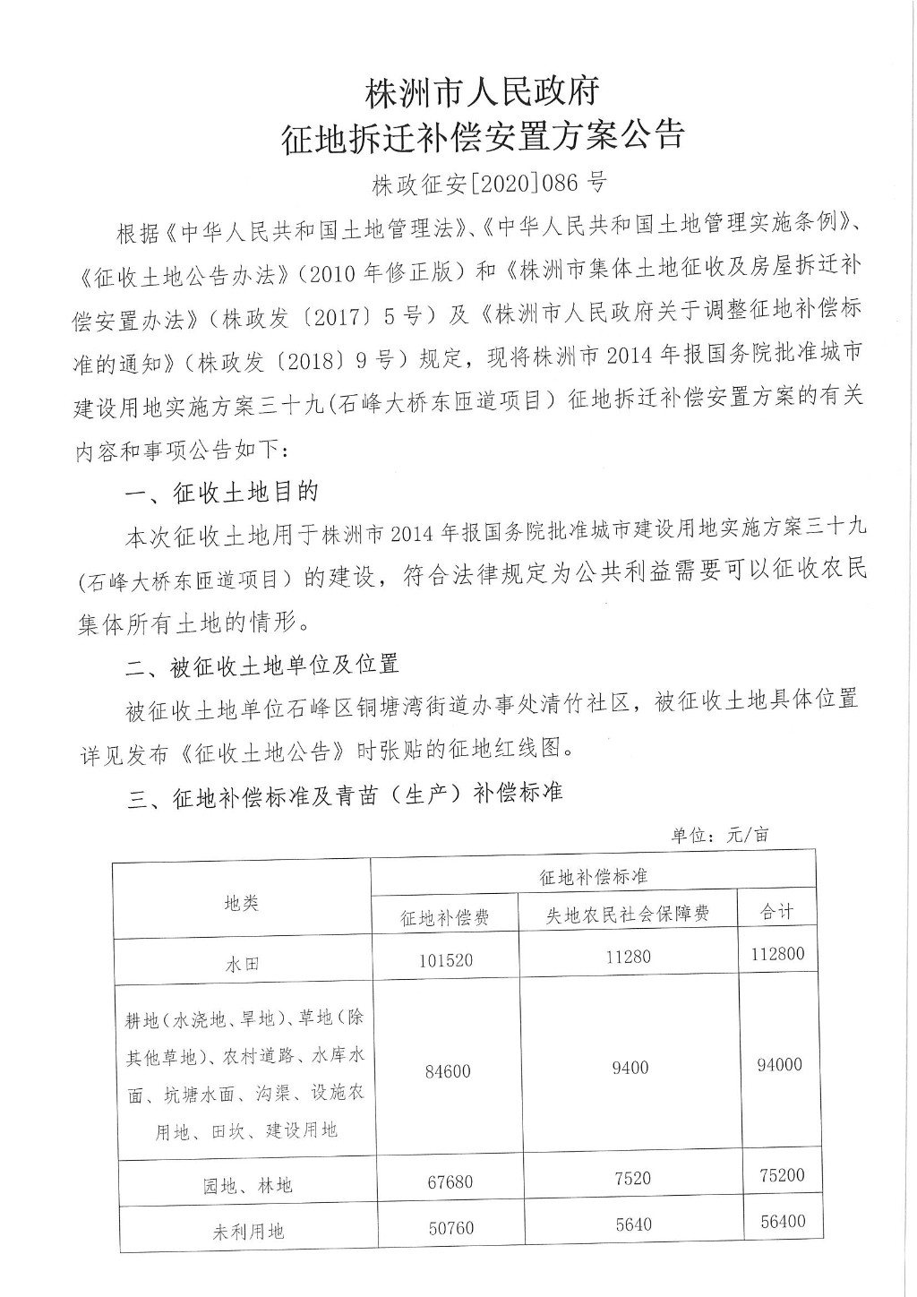 征地拆迁补偿安置方案公告(株政征安【2020】086号)