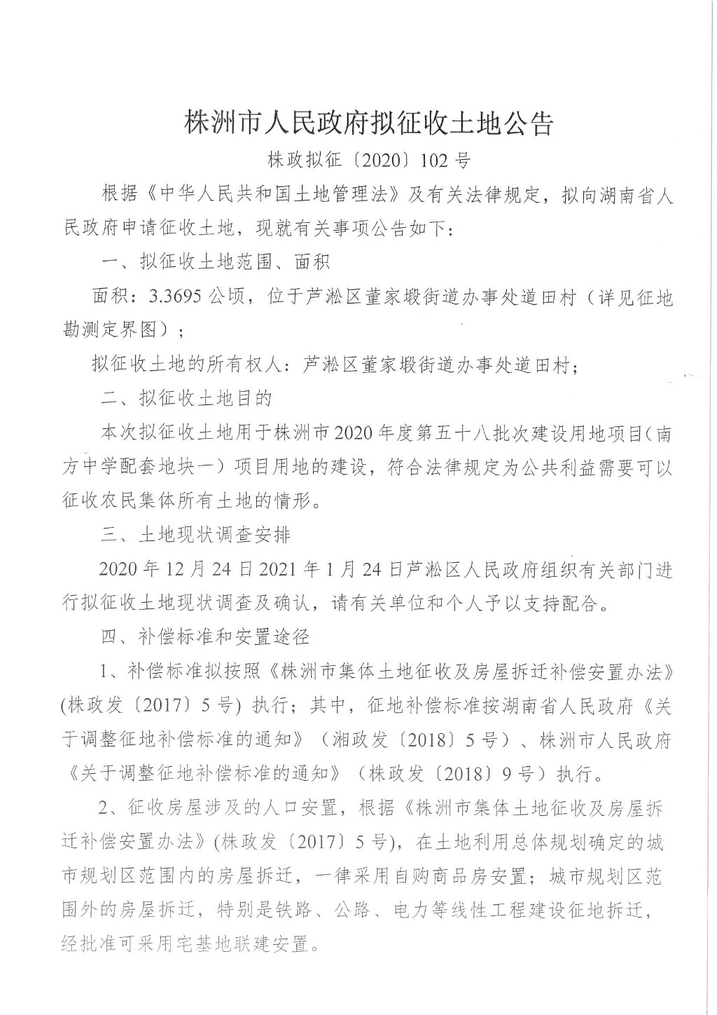 株洲市人民政府拟征收土地公告(株政拟征(2020)102号)