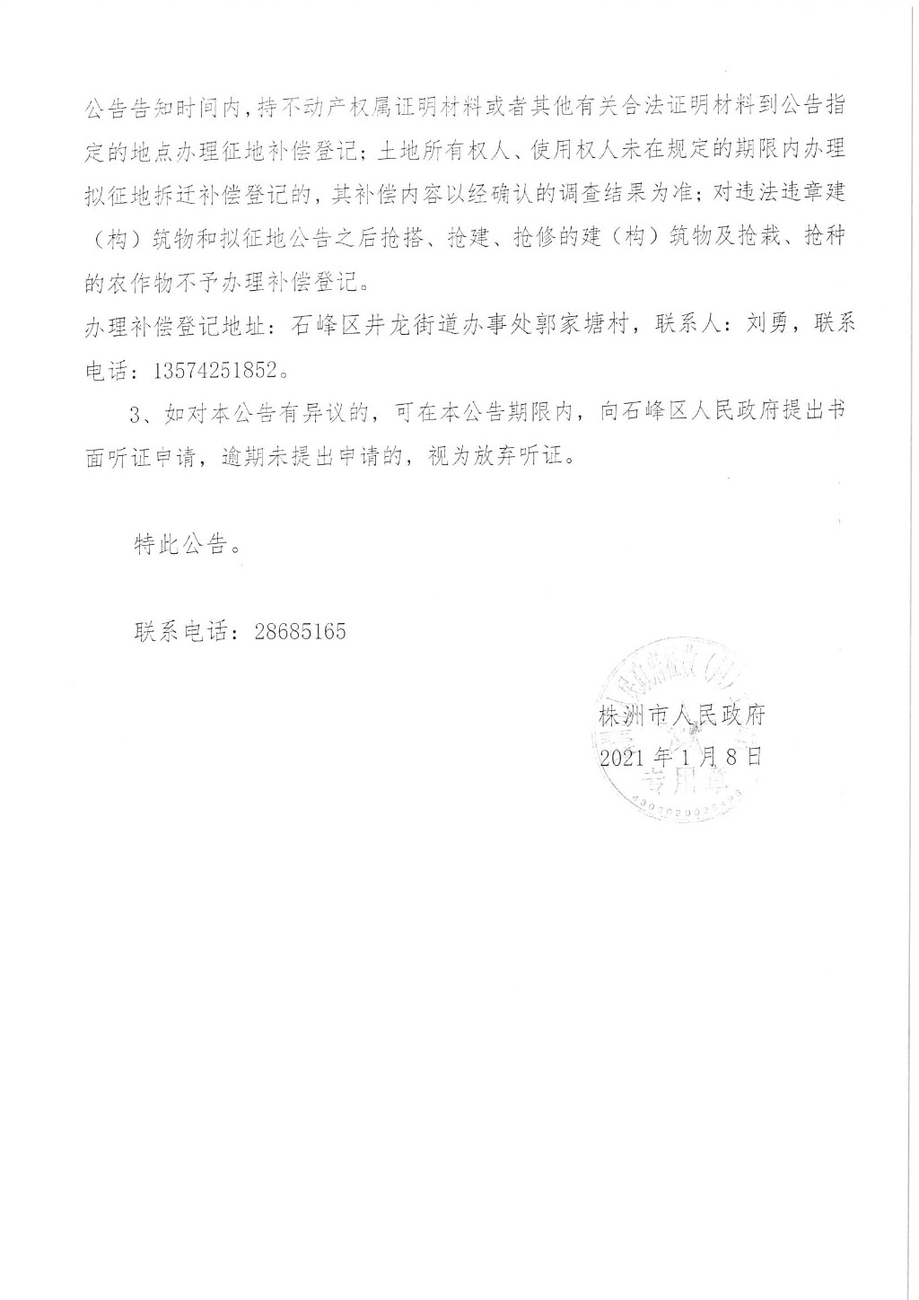 拟征收土地补偿安置方案公告株政拟征安[2021]001号