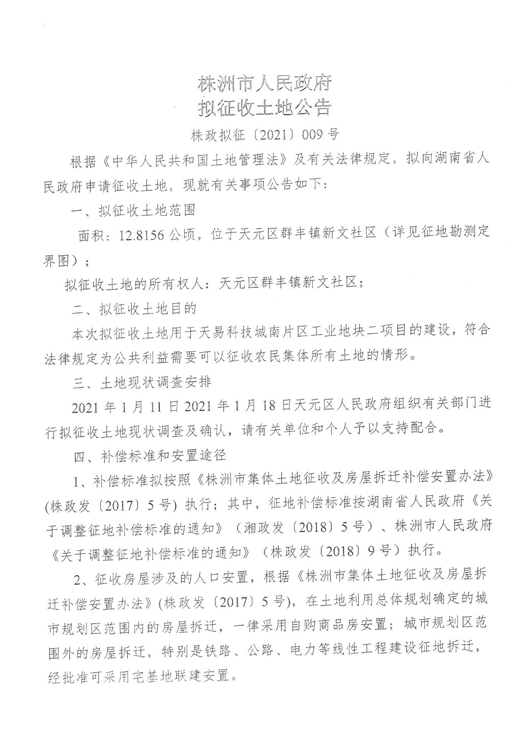 拟征地公告-天易科技城南片区工业地块二-株政拟征[2021]009号