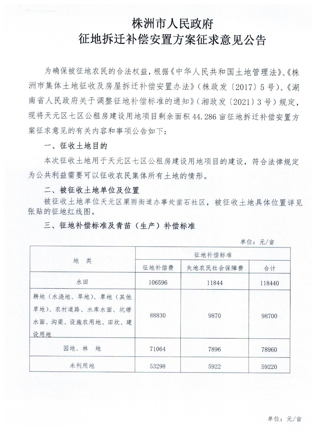 征地拆迁补偿安置方案征求意见公告—天元区七区公租房建设用地项目