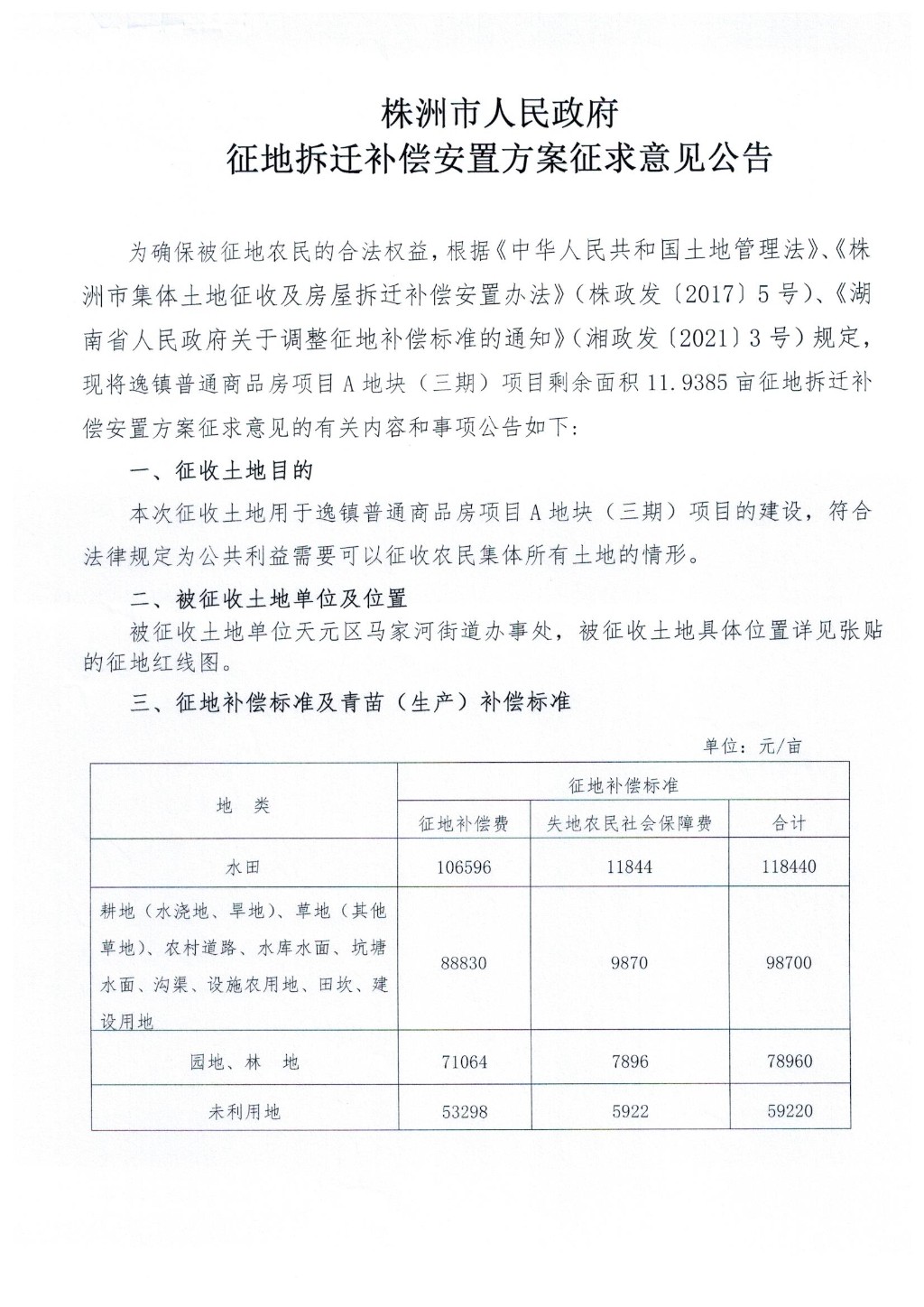 征地拆迁补偿安置方案征求意见公告—逸镇普通商品房项目A地块(三期)项目