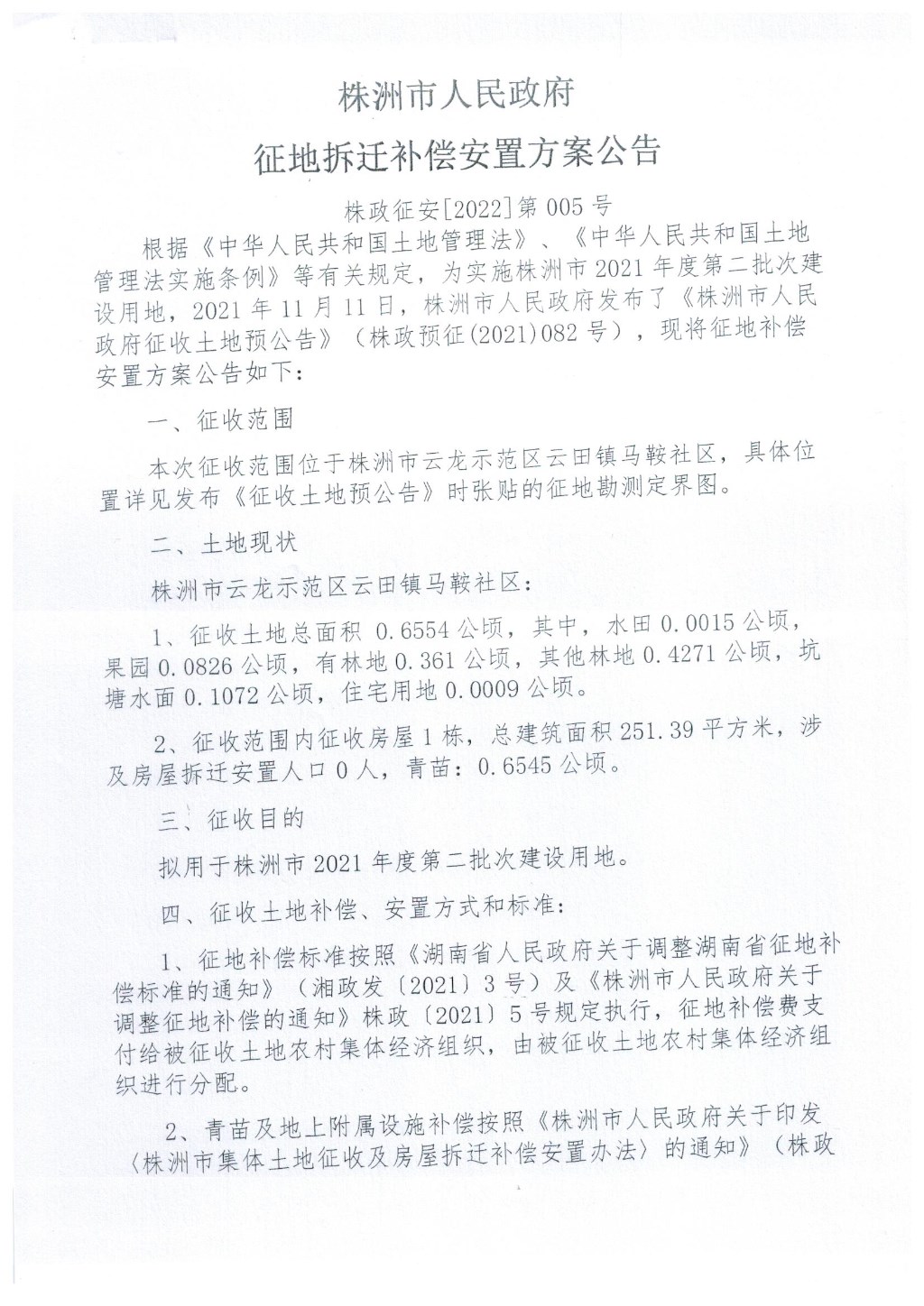 征地补偿安置方案公告株政征安【2022】第005号