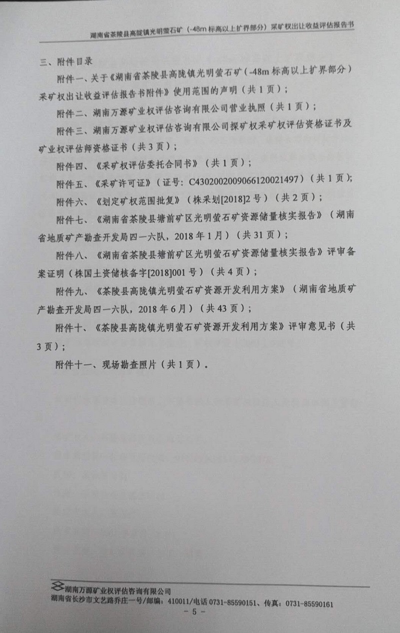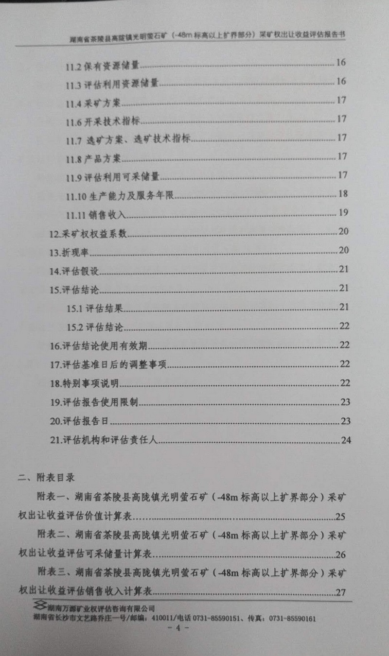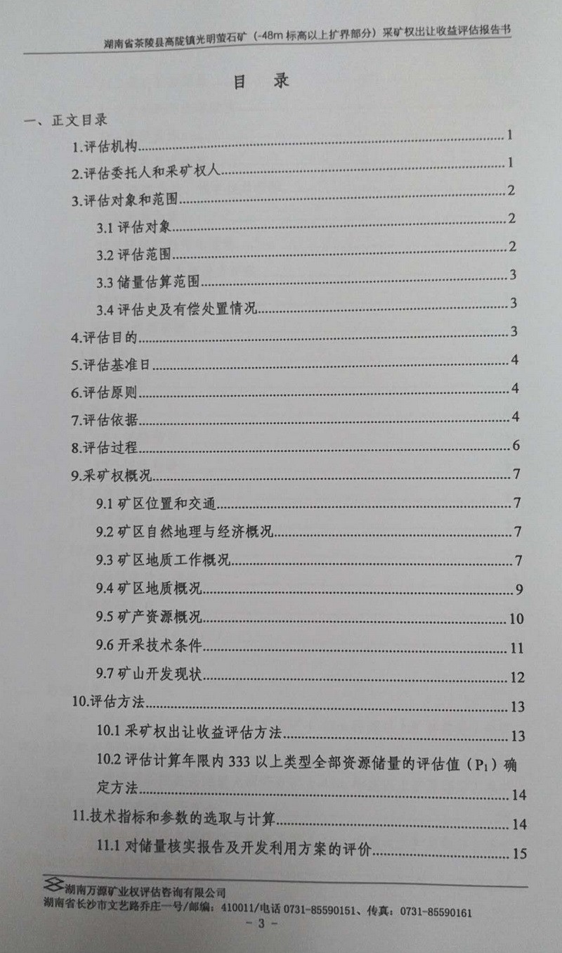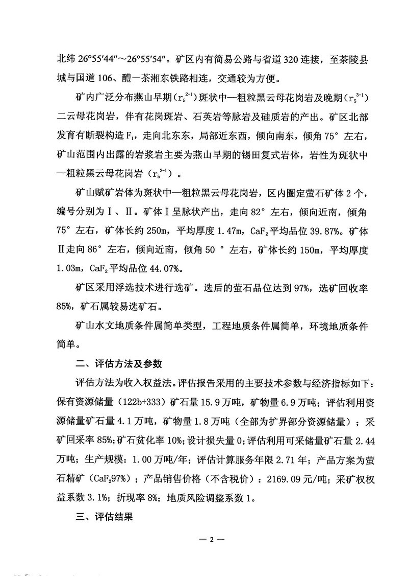 《湖南省茶陵县高垅镇光明萤石矿(-48m标高以上扩界部分)采矿权出让收益评估报告书》审查意见书