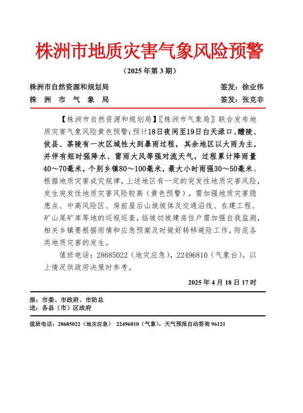 株洲市地质灾害气象风险预警 (2025年第03期)