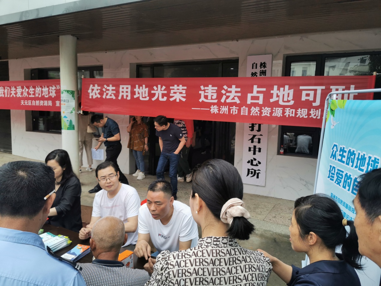 为迎接第54个世界地球日,让广大群众更深入了解世界地球日的相关知识,倡导大家爱护地球、珍惜资源,4月19日,天元区自然资源局组织相关股室前往天元区雷打石镇伞铺村,开展主题为"众生的地球,珍爱的自然"的世界地球日送法下乡宣传活动。