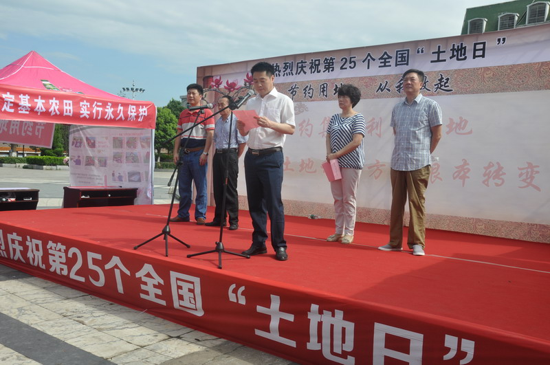 县政府副县长何文龙还就第25个全国“土地日”发表电视讲话,强调要牢固树立新型资源观和资源管理观,始终坚持土地节约集约利用,有效落实耕地保护共同责任,着力推动土地利用方式根本转变,实现经济发展与土地管理方式转变的良性互动。